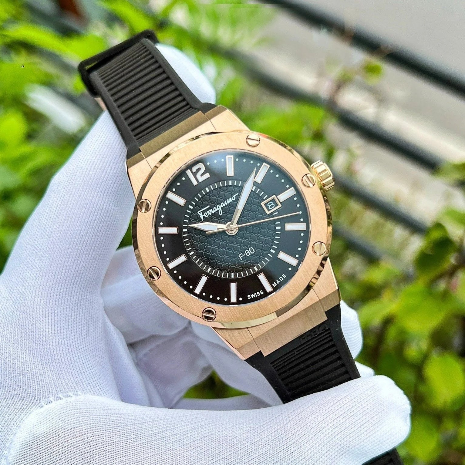 Ferragamo Men’s Swiss Made Quartz Grey Silicone Strap Grey Dial 44mm Watch SFHY01621