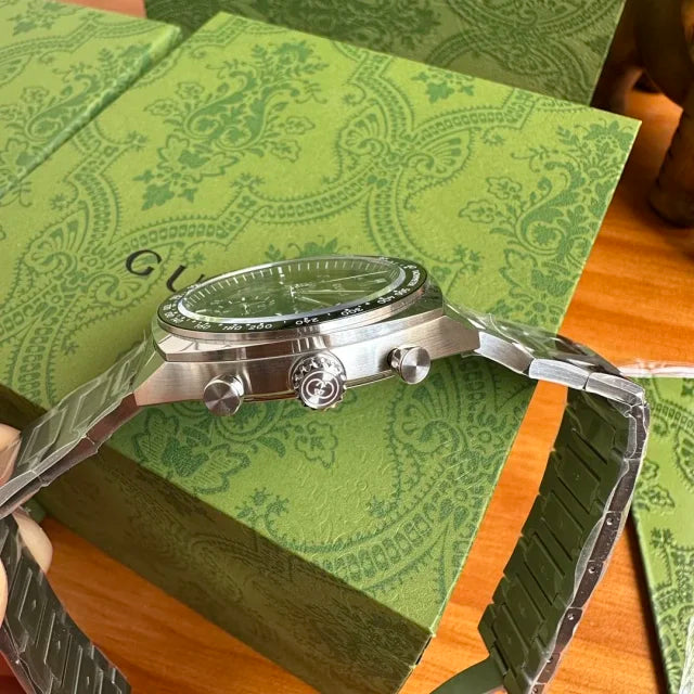 Gucci Men’s Swiss Made Quartz Silver Stainless Steel Green Dial 41mm Watch YA142318
