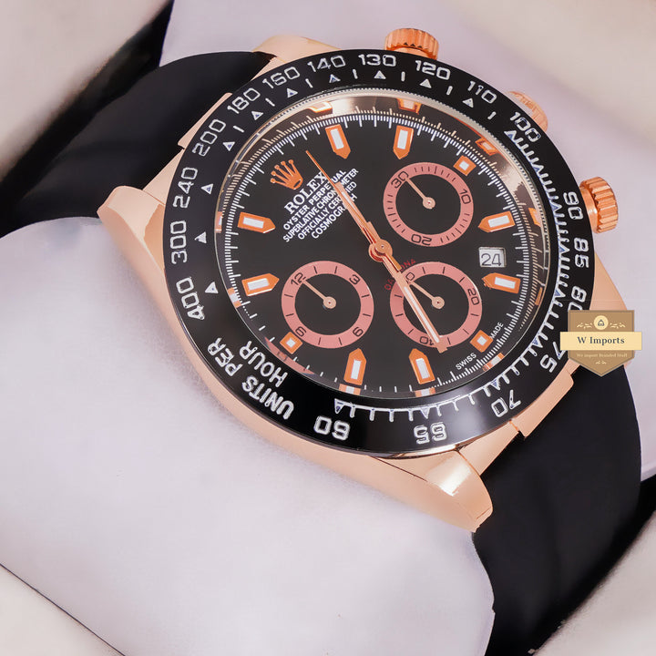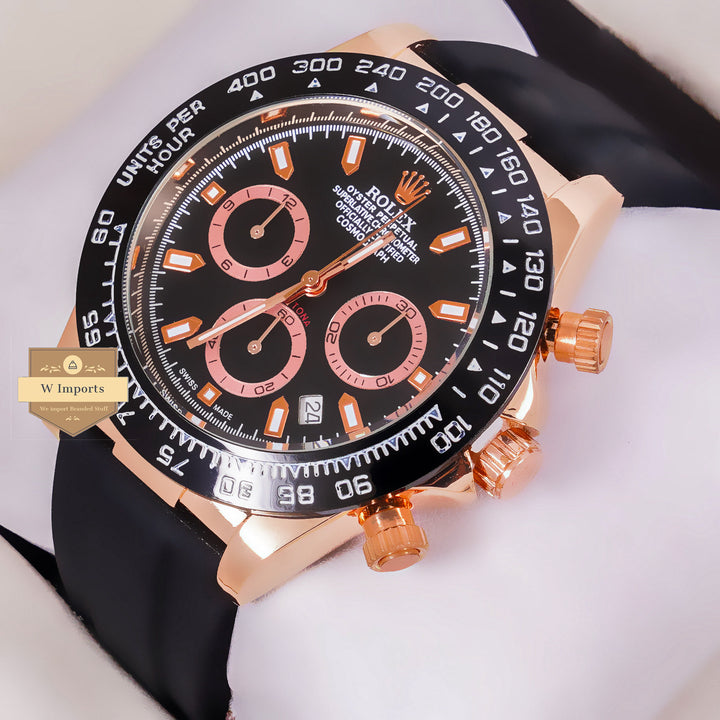 NEW LATEST CHRONOGRAPH COLLECTION ROSE GOLD WITH BLACK DAIL & SILICON STRAP WATCH