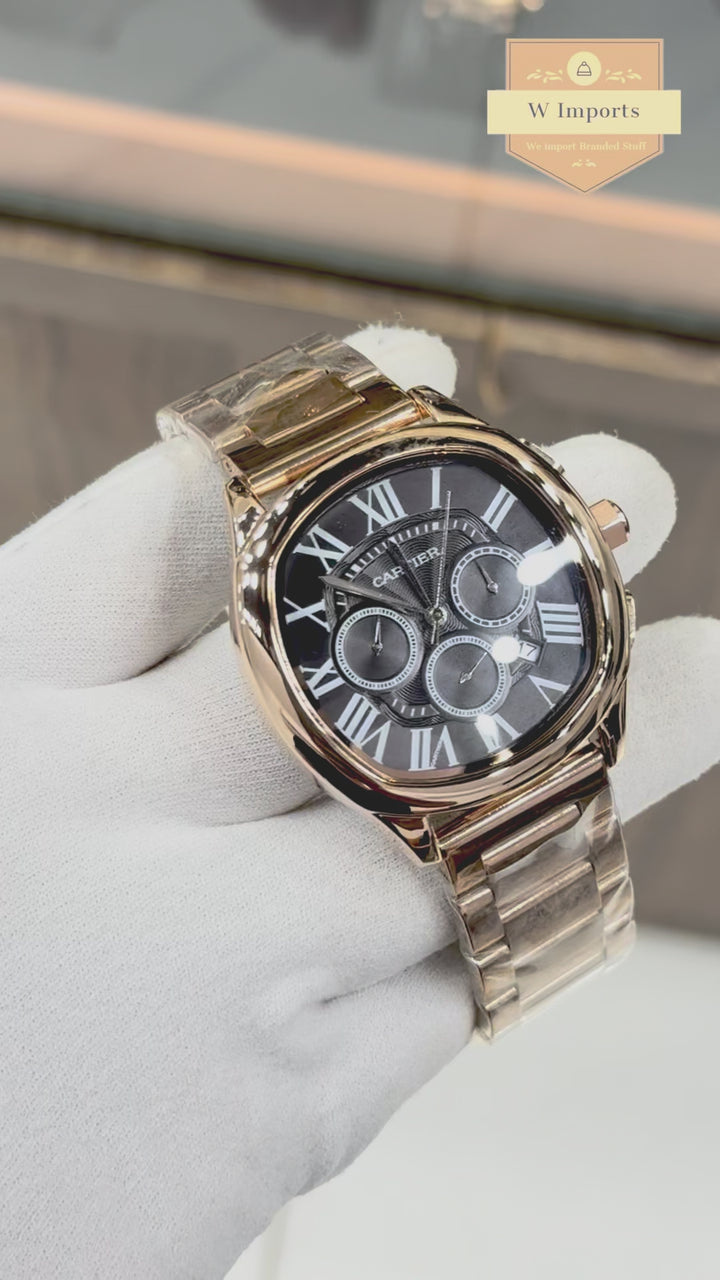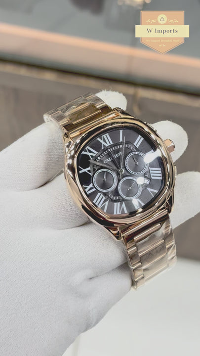 NEW LATEST CHRONOGRAPH COLLECTION ROSE GOLD WITH BLACK DIAL & CHAIN WATCH