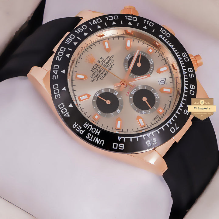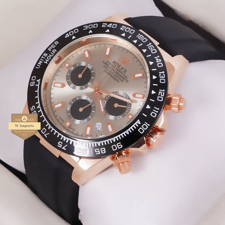 NEW LATEST CHRONOGRAPH COLLECTION ROSE GOLD WITH GREY CHARCOAL DAIL & SILICON STRAP WATCH