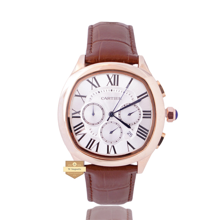 NEW LATEST CHRONOGRAPH COLLECTION ROSE GOLD WITH WHITE DIAL & LEATHER STRAP WATCH
