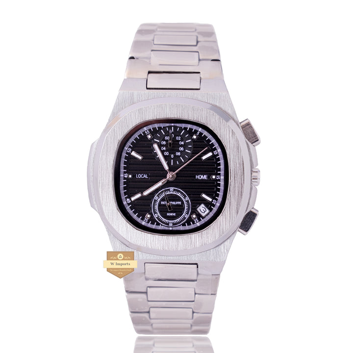 NEW LATEST CHRONOGRAPH COLLECTION SILVER WITH BLACK DAIL CHAIN WATCH
