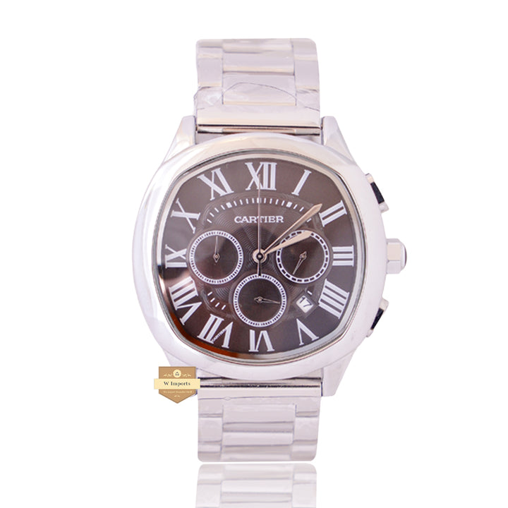 NEW LATEST CHRONOGRAPH COLLECTION SILVER WITH BLACK DIAL & CHAIN WATCH