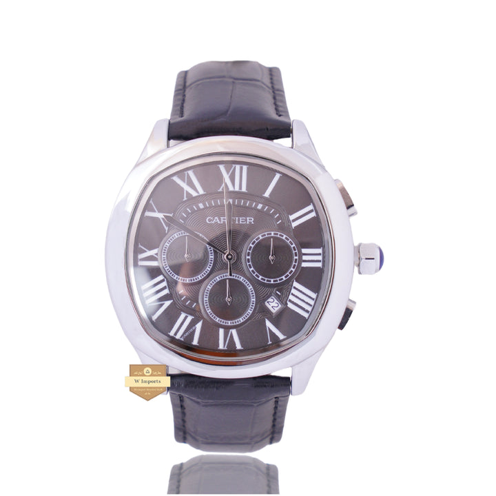 NEW LATEST CHRONOGRAPH COLLECTION SILVER WITH BLACK DIAL & LEATHER STRAP WATCH
