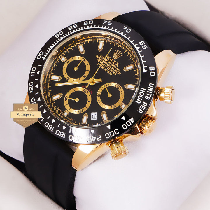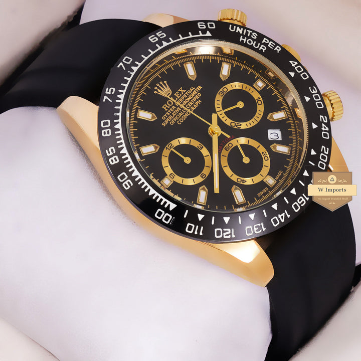 NEW LATEST CHRONOGRAPH COLLECTION YELLOW GOLD WITH BLACK DAIL & SILICON STRAP WATCH