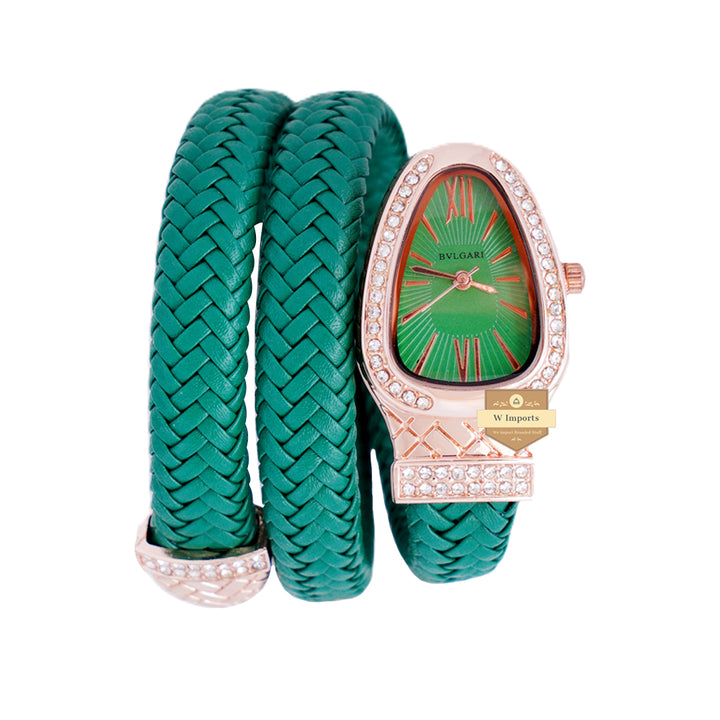 NEW LATEST COLLECTION SNAKE STYLE ROSE GOLD WITH GREEN LADIES WATCH