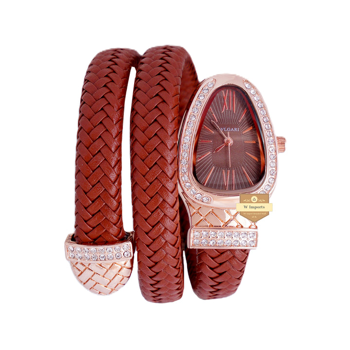 NEW LATEST COLLECTION SNAKE STYLE ROSE GOLD WITH RED LADIES WATCH