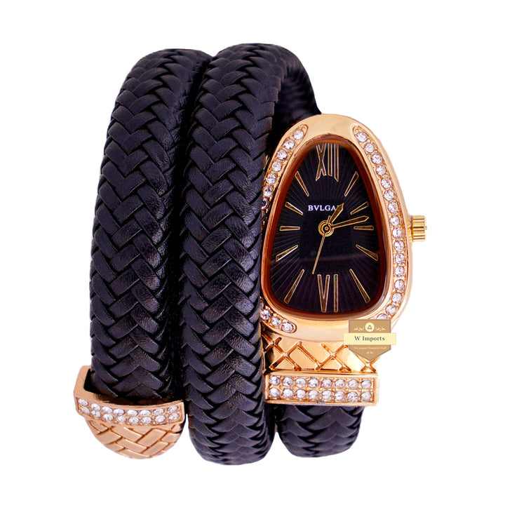 NEW LATEST COLLECTION SNAKE STYLE YELLOW GOLD WITH BLACK LADIES WATCH