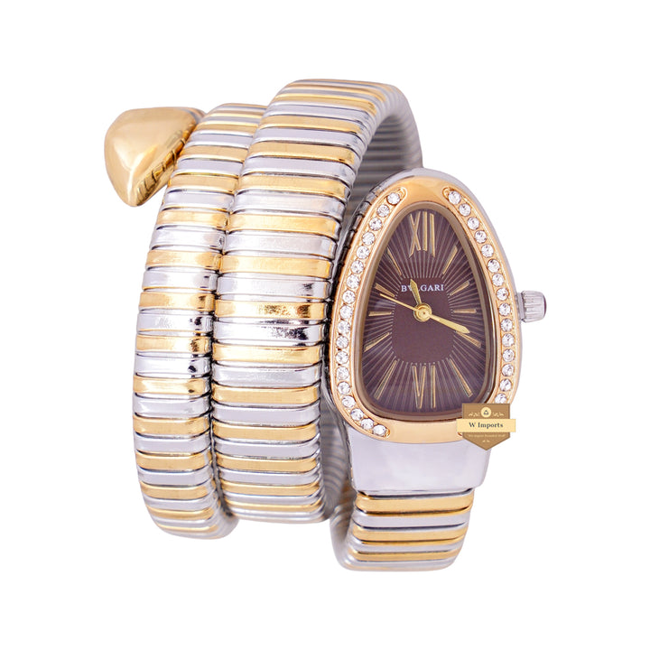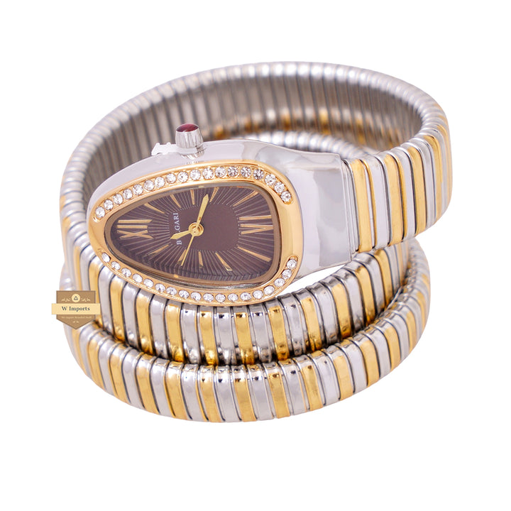 NEW LATEST COLLECTION SNAKE STYLE YELLOW GOLD WITH LADIES CHAIN WATCH