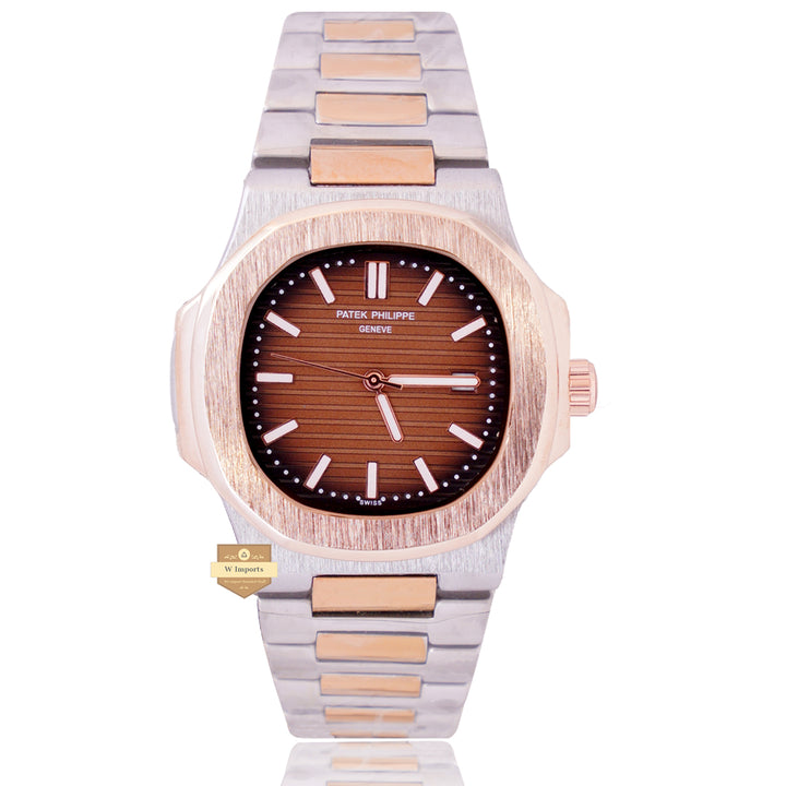 NEW LATEST COLLECTION TWO TONE ROSE GOLD WITH BROWN DAIL CHAIN WATCH