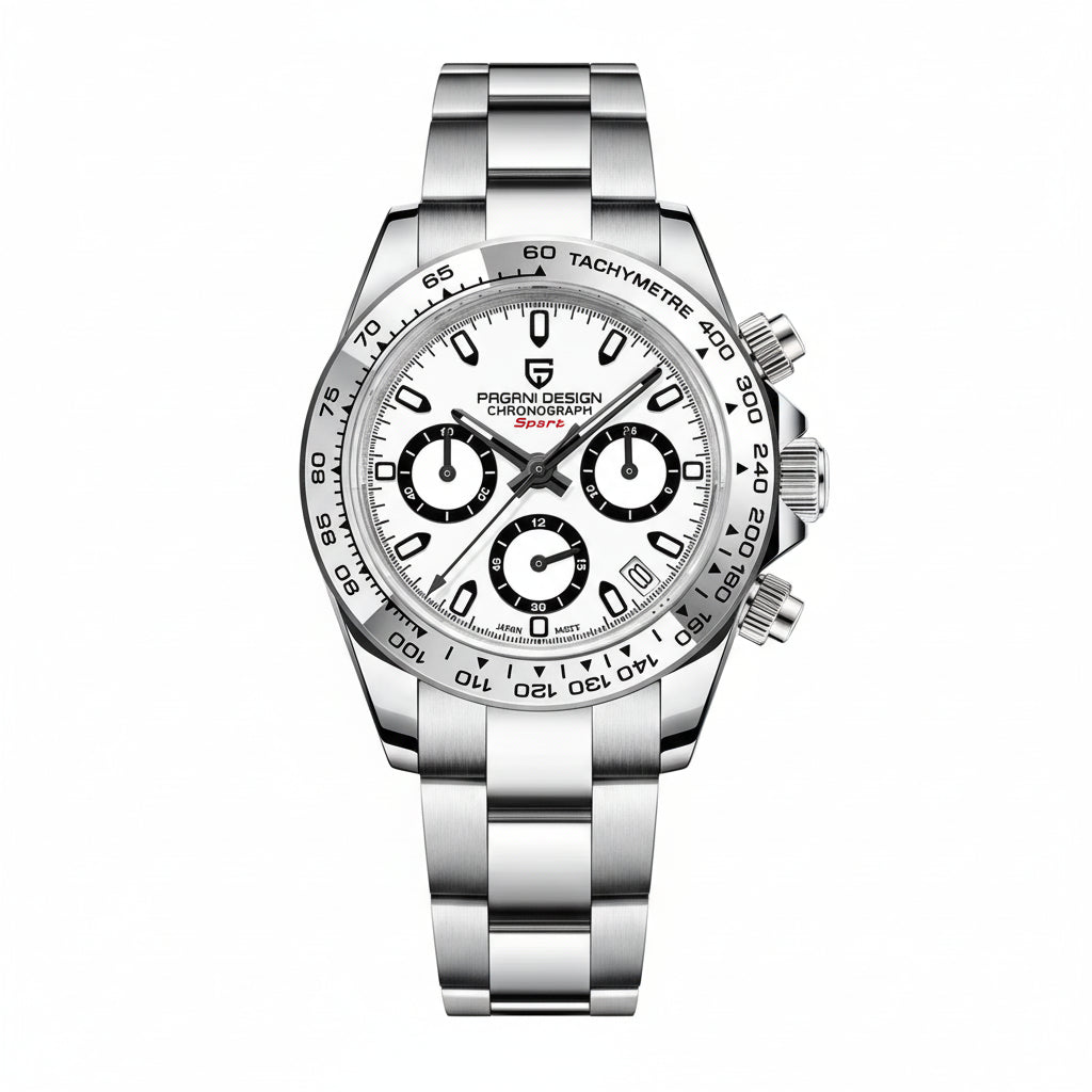 PAGANI DESIGN MEN'S DAYTONA CHRONOGRAPH SILVER STAINLESS STEEL WHITE DAIL JAPANES QUARTZ SKU-PD1727
